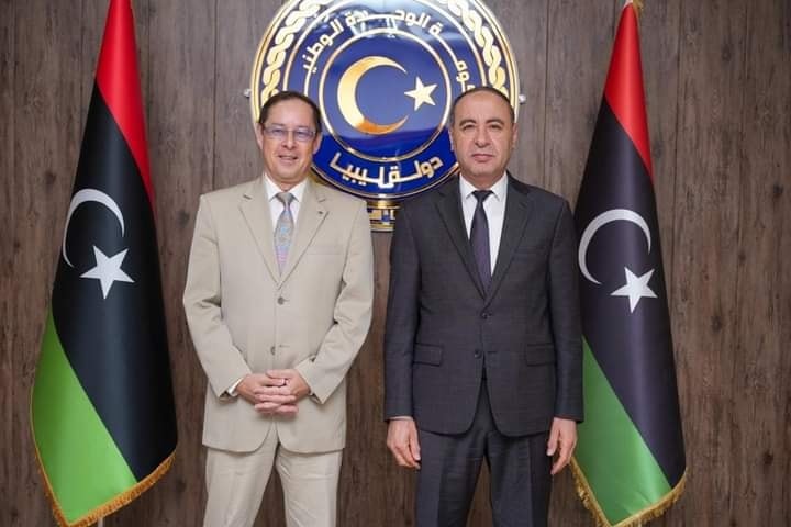 المكلف بتسير شؤون ديوان وزارة الخارجية والتعاون الدولي الطاهر الباعور يستقبل، سفير جمهورية روسيا الاتحادية لدى دولة ليبيا حيدر أغانين؛ حيث جرى خلال اللقاء، سبل تعزيز التعاون وآليات تفعيل نتائج زيارة الوفد الليبي إلى #موسكو الشهر الماضي؛ ذلك بما يخدم المصالح المشتركة بين البلدين، كما أعرب السيد الطاهر الباعور لسعادة السفير، عن خالص التهاني بمناسبة اليوم الوطني الروسي والذي صادف اليوم الأربعاء متمنياً مزيداً من التقدم والازدهار.
